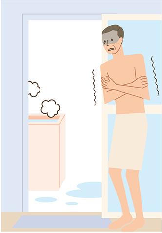 - 脱衣所に暖房器具を置き、入浴の前後に暖めておく(25℃程度)。
