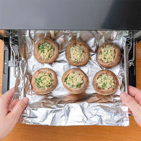 香草を合わせたエスカルゴバターで、しいたけがおしゃれな一品に! トースターでできて簡単。